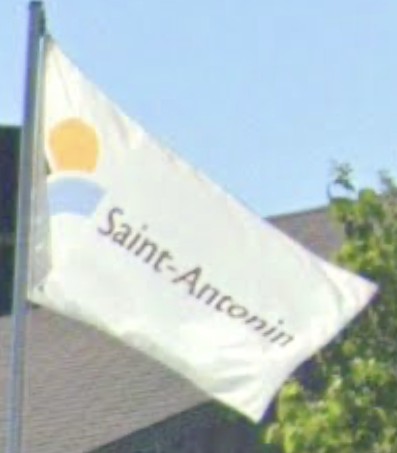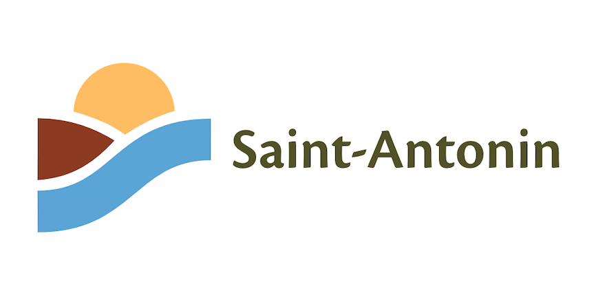 The logo (featuring a golden sun above two curves representing land and water) and the arms are described at http://ville.saint-antonin.qc.ca/saint-antonin/?id=stantonin-image_corporative_et_armoiries.