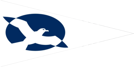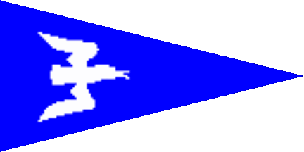 One pennant is white with a blue oval shifted to hoist, over all a flying seagull in counterchanged colours (see left image above). The other one is blue with a white bird heading flywards (see right image above).