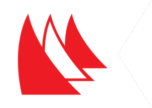 The pennant, maybe the new one is red and parted by an off-centred white cross, you can say a pennant version of the Dannebrog, on the point of intersection of the cross bars is the logo, a white disc, charged with a green sailing boat over green waves, the bigger sale charged with a white water propeller,