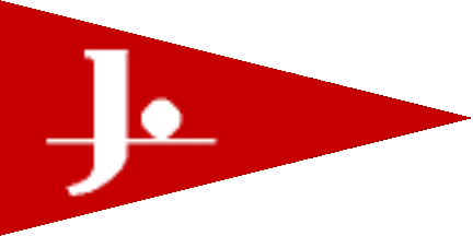 The pennant is red with a dotted white initial "J" on a thin white horizontal line.