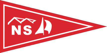 The pennant is red either cotized white-red (see left image above) or fimbriated white (see right image above). Shifted to hoist is a white inscription "NS" under two gables (of a boat house). On centre is a white sailing boat. Nibe is located in Himmerland, a peninsula in East Jutland and south oft he Limfjord.
