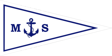 The pennant is white cotised blue-white, shifted to hoist is a blue fowl anchor in pale, flanked by blue initials "M" and "S" (see left image above) or "MS" and "S" (see right image above). The club is based in Nykøbing/Mors.