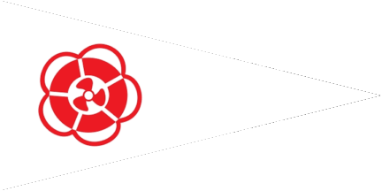 The pennant is white. At hoist is a red cog in a red circle.