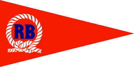 The pennant is red, at hoist is a blue inscription "RB", surrounded by a white rope in circle with a reef knot at ist bottom.