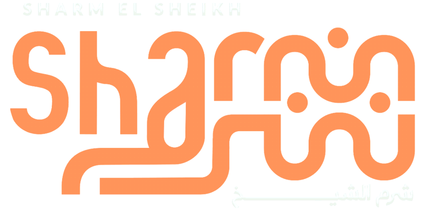 For some clarification, the slogan-image on this flag has an intermixing of "Sharm" in English on the top, and "Sharm" in Arabic [which is read right-to-left" as (mrahs) شرم ] on the bottom; particularly where the English "a" is modified as an "m" [ م ] in Arabic, and at the right the English "m" becomes intermixed with the three-dot "s" [ش] of Arabic – sort of an artistic upside-down "mirror image" of the two different letters – pretty "cool looking" once one understands what is intermixing in this artwork! The wording of "El Sheikh" itself does not appear on this flag.