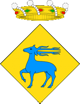 "Escut caironat: d’or, un cérvol d’atzur. Per timbre una corona de baró" [gold shield in lozenge form (diamond shaped) with a blue deer; as crest baron crown]: es-b-cvl)