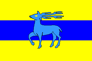 The new flag was approved on May 14, 2018, and was published in the Diari Oficial de la Generalitat Catalana nº 7708, dated September 10, 2018: Yellow flag, with the dark blue deer of the shield, 3/4 of the height of the cloth, in the center; proportions 2:3.