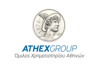 The flag of the Athens Stock Exchange is white with the corporate logo