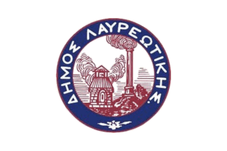 The flag of Lavreotiki is white with a central disk bearing an illustration