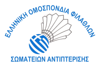 The flags of the Hellenic Badminton Federation are white with the federation's emblem in the center.
