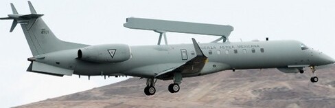 The emblem of the Mexican Air Force consists of a horizontal tri-band green, white, red, behind a white aircraft silhouette.