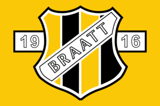 The flag of IL Braatt (Idrettslaget Braatt) from Kristiansund is yellow with the badge centered.
