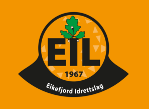 The flags of Eikefjord IL (Eikefjord Idrettslag) from Eikefjord in Kinn Municipality is orange with the badge centered.
