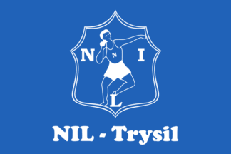 The flag of Nybergsund IL-Trysil (Nybergsund Idrettslag-Trysil) from Nybergsund in Trysil Municipality is blue with the badge centered.