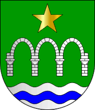 Shield Vert with base wavy of Argent and Azure, an arcade of three arches Argent masoned Sable, in chief a 5-point star Or.