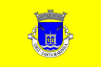 Mural crown Argent with three visible towers (village rank) and white scroll reading in black upper case serifed letters "ORIZ - SANTA MARINHA".