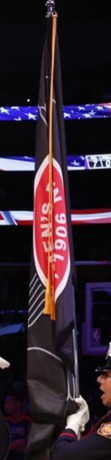 flag with a red seal. It is the flag of the Los Angeles Firemen's Relief