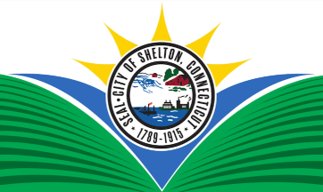 After Ciccone consulted with libraries, the Shelton Historical Society, and high school civics classes so that a flag would symbolize Shelton in its entirety, the Flag Committee came up with 75 designs, many of which were based on student submissions. Four designs were presented to the Board of Aldermen in January 2025 and were subjected to a public survey in June. The flag that received 57% of the 1800 survey votes had the city seal with five sunbeams for the historical names of the Shelton; behind and below the seal were a blue “V” for the Housatonic River and the city’s industrial history, and green pastures for its agricultural history. This flag was unanimously adopted by the Board of Alderman and revealed to the city on October 5, 2025.