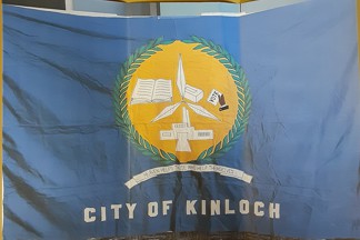city seal is a yellow circle with green leaves all around it. Inside the city