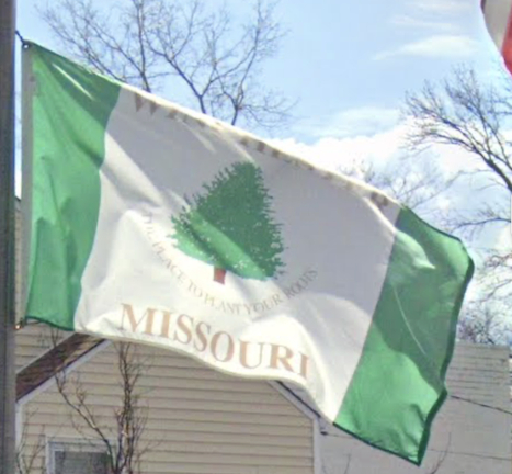The flag can be clearly seen in this 2020 photo: https://www.google.com/maps/@38.5929063,-90.5271715