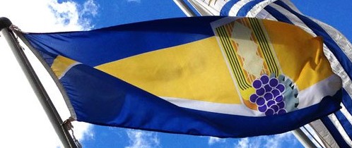 was adopted by January 2013. Its flag is a blue field with a large orange wavy