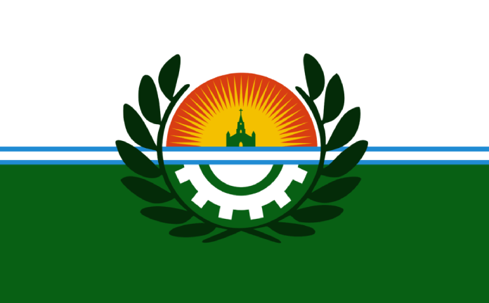 The flag is divided into two equal dimensions; the upper stripe is white, revealing peace, simplicity, and nobility, while the lower stripe is green, representing hope, the land, the fertility of the fields, and the plains of the district.