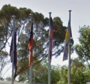 Recently, Alice Springs Town Council has updated their flag from being a seal on a white field with a yellow outline, to an updated logo-flag of the Alice Springs Town Council's logo. It can be seen in use in this photo.