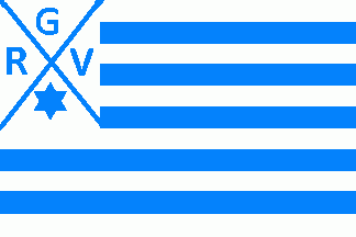 The flag was an 11-stripes flag, horizontally divided by alternating white and blue stripes. The white canton was parted by a thin blue saltire with blue inscriptions on every quarter as follows: "G"(top), "R"(hoist), "V"(fly) and a red 6-point star(bottom) (see left image above).