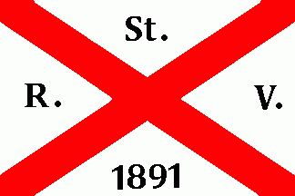 It was a white flag parted by a red saltire with black serifed inscriptions on every quarter as follows: "St."(top), "R."(hoist), "V."(fly) and "1891"(bottom).