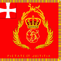 The standards had golden or silver fringes on three edges. Near the bottom edge had been a motto in golden initials: "PIETATE ET JUSTITIA" (=piety and justice).
