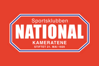 The flag of SK Nationalkameratene (Sportsklubben Nationalkameratene) from Trondheim is red with the logo centered.