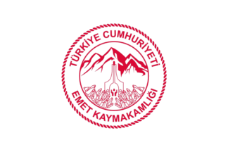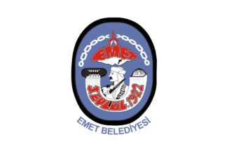 The flag of Emet (photo) is white with the municipality's emblem in the middle. "Belediyesi" means "Municipality".