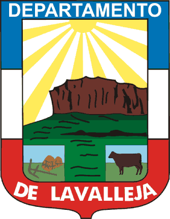 The original coat of arms was approved by the administration on 22 April 1927, being designed by Alberto Miranda Zabaleta. The current version was adopted on 4 August 2010 through Decree Nš 2882 in Article 2, when the Intendency changed its name from Municipal Intendency to Departamental Intendency, likely due to some confusion as the Departments themselves have municipalities; it was only a name change, no extra powers were received. The coat of arms is a shield divided horizontally into three bands of blue, white, and red as the colors on the flag of the Orientals led by Juan Antonio Lavalleja. At the top, DEPARTAMENTO is read in white; in the same color, DE LAVALLEJA is read at the bottom. It has one inner section, through which the Sun of May shines over the Cerro Arequita hill with grass in front. The lower-left depicts a small square depicting two piles of wheat and a plow for agriculture; the lower-right depicts a small square with a cow for ranching, both squares over grass with a blue field.