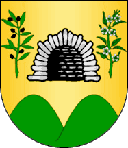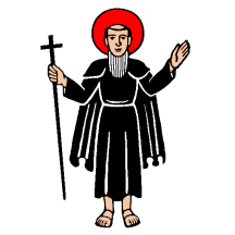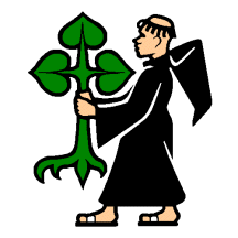 A cross fleury gyronny and symbol of the Dominican Order – a cross of the Order of Santo Domingo or of St Dominic – see cross fleury and cross gyronny with its following note (also cross counterchanged).