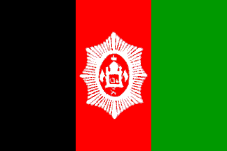Nadir Shah kept Amanullah's vertical triband but reestablished the former, Ottoman-like arms, considering that Amanullah's arms were too progressist. The image in Baert 2001 is white and red, and the background of the oval surrounding the mosque is shown in red. Baert 2001 dates the flag 1929-1931.