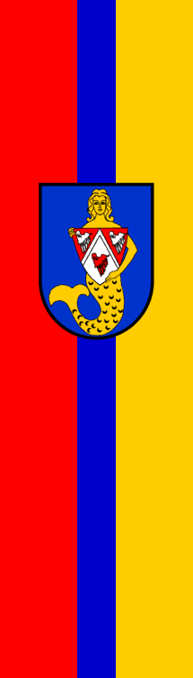 | Description of arms (German): | Im blauen Schild eine goldene Meerjungfer, die in den Armen einen roten Schild hält, in dem eine mit einem roten Flügel belgte silberne Spitze erscheint, die von zwei silbernen Flügeln begleitet ist. [1] [2] |