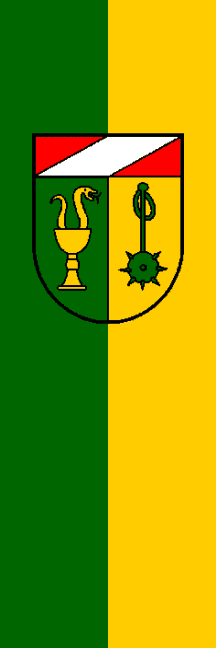 Description of arms (German): Unter rotem Schildhaupt, darin von der rechten zur linken Schildhälfte ein silberner Schräglinksbalken, gespalten; rechts in Grün ein goldener Kelch mit einer goldenen, linksgewendeten, in einem Bogen durch die Kuppa kriechenden, vorne und hinten aufgerichteten Schlange; links in Gold ein grüner, gestürzter Morgenstern.