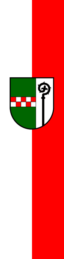 | Description of arms (German): | Ein grüner Schild mit linker silberner Flanke. Im grünen Feld ein von Rot und Silber in zwei Reihen geschachter Balken, im silbernen Feld ein schwarzer Bischofsstab. [1] |