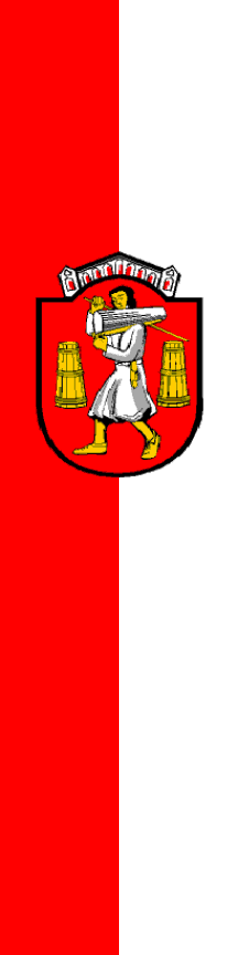 | Description of arms (German): | Im roten Schilde, beiderseits von je einer naturfarbenen, nach oben sich verjüngenden Perkufe begleitet, einen nach rechts schreitenden Salzträger in weißer Kleidung, der auf der linken Schulter in einer Holzmulde einen Salzstock trägt, während er mittels eines in der Rechten gehaltenen Stockes die Last unterstützt. [1] [2] |