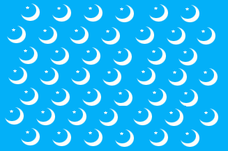 In 1918, the party adopted a light blue flag charged with 45 crescents and stars (the crescent pointing towards the hoist), in seven rows of 6, 7, 6, 7, 6, 7, and 6 white crescent and stars. Then the party adopted a new flag, horizontally divided blue, red and green with a white crescent and star in the center, that was similar to the first national flag.