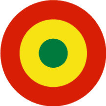 The color carried by Bolivian army regiments is called the bandera de guerra. It is a silk national tricolor flag with the national coat-of-arms surrounded by olive and laurel branches, about 38 cm square, embroidered in bold relief in gold and silver thread on the center of the obverse side. The name and number of the unit is inscribed in a straight line of 10 cm high letters on the obverse side immediately below the shield. Battle honors are inscribed on the reverse on the yellow stripe. The pike is 2.55 meters, topped with a finial about 35 cm long and 8 cm wide in the shape of a plated brass lance-head. Below the lance head are attached gold cord and tassels and moiré streamers in the national colors, about 135 cm long by 10 cm wide.