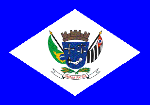 The flag of Álvares Machado is blue with a white lozenge charged with the municipal coat of arms.