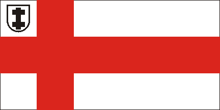 ratio. In the centre of the flag is a red-edged white lorraine cross
