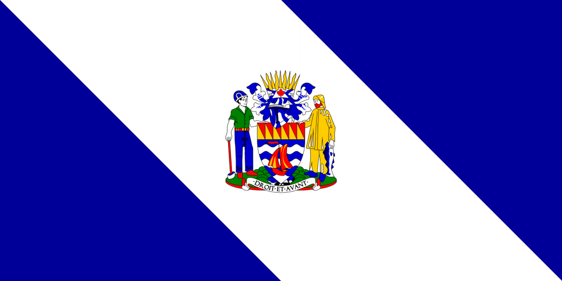 blue field. The design represents four right triangles, blue signifying the “true-blue”