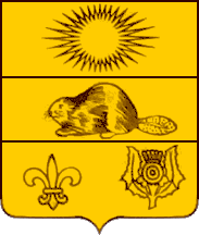 The coat of arms shield shows on a fess, between a sun in chief and a fleur-de-lis and a thistle set in fess in campaign, a beaver.