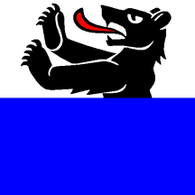 Per fess Argent and Azure in chief a Semi Bear rampant issuant Sable langued Gules.