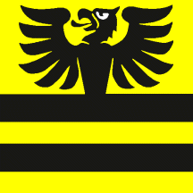 Per fess Or a demi-eagle displayed Sable issuant from a barry of four of the Second and First.
