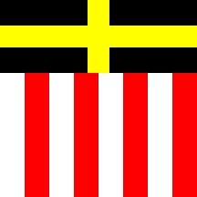 A Paly of eight Argent and Gules a chief Sable with a cross throughout Or.
