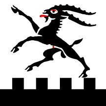 Argent an Ibex salient Sable over a base embattled of the Second.