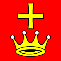 Gules a Cross patte couped Or and in base a Crown of the same pearled Argent.